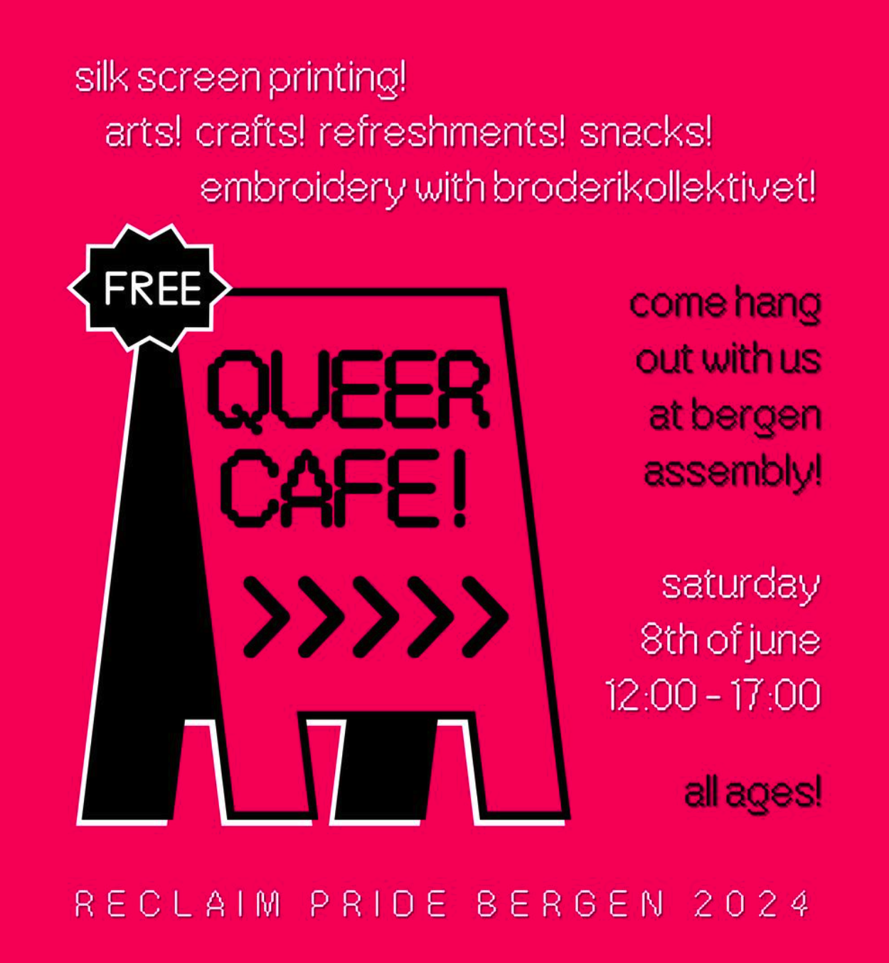 RECLAIM PRIDE BERGEN: Queer Café with Broderikollektivet + silkscreen workshop + pre-party!